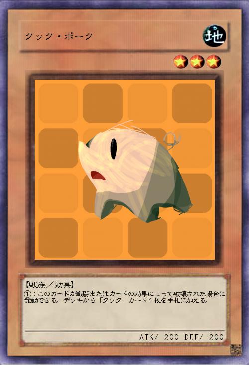 | ①:このカードが戦闘またはカードの効果によって破壊された場合に発動できる。デッキから「クック」カード1枚を手札に加える。 | |||