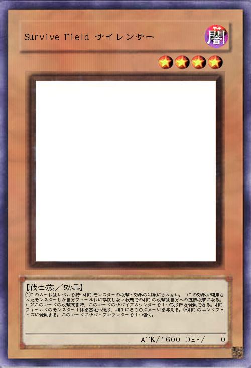 | ①このカードはレベルを持つ相手モンスターの攻撃・効果の対象にされない。(この効果が適用されたモンスターしか自分フィールドに存在しない状態での相手の攻撃は自分への直接攻撃になる。)②このカードの攻撃宣言時、このカードのサバイブカウンターを1つ取り除き発動できる。相手フィールドのモンスター1体を墓地へ送り、相手に800ダメージを与える。③相手のエンドフェイズに発動する。このカードにサバイブカウンターを1つ置く。 | |||