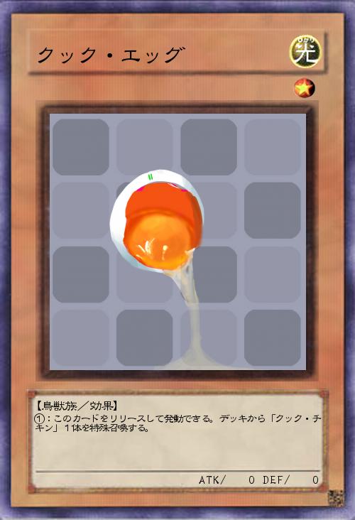 | ①:このカードをリリースして発動できる。デッキから「クック・チキン」1体を特殊召喚する。 | |||