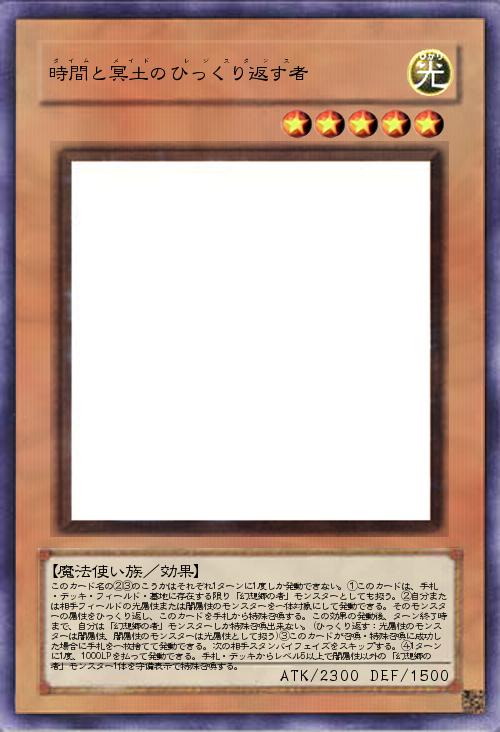 | このカード名の②③のこうかはそれぞれ1ターンに1度しか発動できない。①このカードは、手札・デッキ・フィールド・墓地に存在する限り「幻想郷の者」モンスターとしても扱う。②自分または相手フィールドの光属性または闇属性のモンスターを一体対象にして発動できる。そのモンスターの属性をひっくり返し、このカードを手札から特殊召喚する。この効果の発動後、ターン終了時まで、自分は「幻想郷の者」モンスターしか特殊召喚出来ない。(ひっくり返す:光属性のモンスターは闇属性、闇属性のモンスターは光属性として扱う)③このカードが召喚・特殊召喚に成功した場合に手札を一枚捨てて発動できる。次の相手スタンバイフェイズをスキップする。④1ターンに1度、1000LPを払って発動できる。手札・デッキからレベル5以上で闇属性以外の「幻想郷の者」モンスター1体を守備表示で特殊召喚する。 | |||