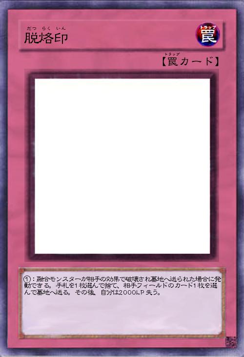 | ①:融合モンスターが相手の効果で破壊され墓地へ送られた場合に発動できる。手札を1枚選んで捨て、相手フィールドのカード1枚を選んで墓地へ送る。その後、自分は2000LP失う。 | |||