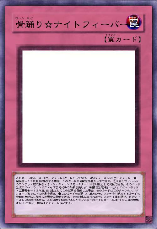 「罠カードです。シンプルなアンデット族限定の耐性付与に加え、盂蘭骨会13代目を対象として発動した場合は、対象に取る蘇生カード(死者蘇生とか)の発動を無効除外した後、対象に取られた(ライブを無視した)モンスターはアイドルに魅了され、13人目の埋葬者として新たなドルオタになる…というのをイメージしています。」(2022-10-25 11:06)