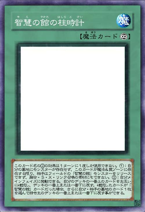 | このカード名の②の効果は1ターンに1度しか使用できない。①:自分の墓地にモンスターが存在せず、このカードが魔法&罠ゾーンに存在する限り、相手はフィールドの「智慧の館」モンスターをリリースできず、融合・S・X・リンク召喚の素材にもできない。②:自分メインフェイズに発動できる。自分のデッキの一番上のカードをお互いに確認し、デッキの一番上または一番下に戻す。確認したカードが「智慧の館」カードだった場合、さらに自分・相手の墓地のカード1枚を選んで持ち主のデッキの一番上または一番下に戻す事ができる。 | |||