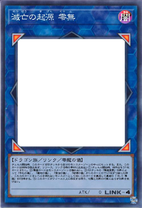 | デュエル開始時、このカードをEXデッキから自分のモンスターゾーンの中心にセットする。また、このカードは特殊召喚出来ず、リリース、リンク召喚の素材に出来ない①:デュエル開始時、相手はもう1枚カードを引く。②:零龍カードはモンスターゾーンを離れない。③:EXデッキの「零龍星雲」効果によって「手札の儀」、「墓地の儀」、「復活の儀」、「破壊の儀」がこのカードの下に1枚ずつ揃った時、これらのカードをレベルを持たないモンスターとして扱いこのカードを裏返して裏面の「 No.0 零龍」をX召喚する。④:このカードがフィールド上に存在する限り、攻撃と効果の対象にならず効果を受けない。 | |||