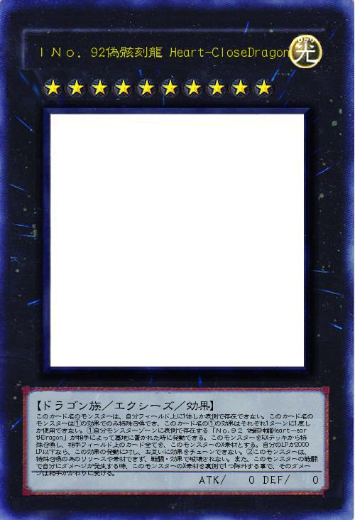 | このカード名のモンスターは、自分フィールド上に1体しか表側で存在できない。このカード名のモンスターは①の効果でのみ特殊召喚でき、このカード名の①の効果はそれぞれ1ターンに1度しか使用できない。①自分モンスターゾーンに表側で存在する「No.92 偽骸神龍Heart-eartHDragon」が相手によって墓地に置かれた時に発動できる。このモンスターをEXデッキから特殊召喚し、相手フィールド上のカード全てを、このモンスターのX素材とする。自分のLPが2000LP以下なら、この効果の発動に対し、お互いに効果をチェーンできない。②このモンスターは、特殊召喚の為のリリースや素材できず、戦闘・効果で破壊されない。また、このモンスターの戦闘で自分にダメージが発生する時、このモンスターのX素材を裏側で1つ除外する事で、そのダメージは相手がかわりに受ける。 | |||