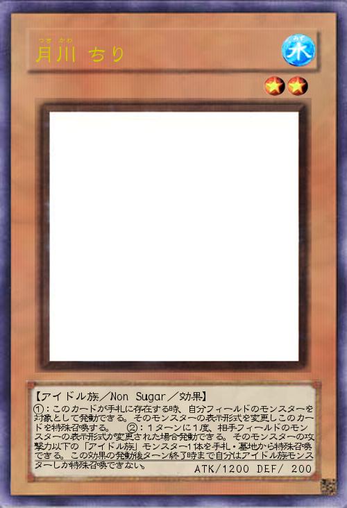 | ①:このカードが手札に存在する時、自分フィールドのモンスターを対象として発動できる。そのモンスターの表示形式を変更しこのカードを特殊召喚する。 ②:1ターンに1度、相手フィールドのモンスターの表示形式が変更された場合発動できる。そのモンスターの攻撃力以下の「アイドル族」モンスター1体を手札・墓地から特殊召喚できる。この効果の発動後ターン終了時まで自分はアイドル族モンスターしか特殊召喚できない。 | |||