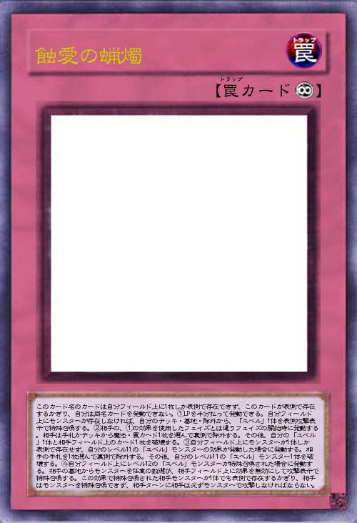 | このカード名のカードは自分フィールド上に1枚しか表側で存在できず、このカードが表側で存在するかぎり、自分は同名カードを発動できない。①LPを半分払って発動できる。自分フィールド上にモンスターが存在しなければ、自分のデッキ・墓地・除外から、「ユベル」1体を表側攻撃表示で特殊召喚する。②相手の、①の効果を使用したフェイズとは違うフェイズの開始時に発動する。相手は手札かデッキから魔法・罠カード1枚を選んで裏側で除外する。その後、自分の「ユベル」1体と相手フィールド上のカード1枚を破壊する。③自分フィールド上にモンスターが1体しか表側で存在せず、自分のレベル11の「ユベル」モンスターの効果が発動した場合に発動する。相手の手札を1枚選んで裏側で除外する。その後、自分のレベル11の「ユベル」モンスター1体を破壊する。④自分フィールド上にレベル12の「ユベル」モンスターが特殊召喚された場合に発動する。相 | |||
