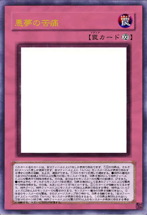 | このカード名のカードは、自分フィールド上に1枚しか表側で存在できず、①③の効果は、それぞれ1ターンに1度しか使用できず、自分フィールド上に「ユベル」モンスターのみが表側で存在する場合に効果の発動、および、適用ができる。①次のうち1つを選んで適用する。●相手の墓地から自分のLPの数値より500以上攻撃力の低いモンスター1体を、効果を無効にして相手フィールド上に攻撃表示で特殊召喚する。その後、自分はそのモンスターの攻撃力の数値分、LPを失う。●相手は手札・デッキからモンスター1体を選び、効果を無効にして自身のフィールド上に攻撃表示で特殊召喚する。その後、お互いにカードを1枚ドローする。②このカードが発動されてるかぎり、相手ターン、相手フィールド上にモンスターが2体以上表側で存在する場合、相手はバトルフェイズに2体以上のモンスターで攻撃を行うまで、モンスター・魔法の効果を発動できない。(2体目の | |||
