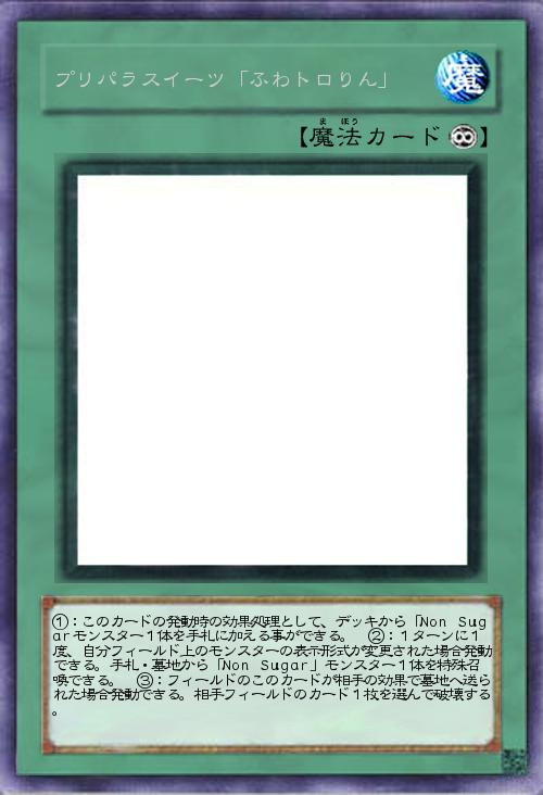 | ①:このカードの発動時の効果処理として、デッキから「Non Sugarモンスター1体を手札に加える事ができる。 ②:1ターンに1度、自分フィールド上のモンスターの表示形式が変更された場合発動できる。手札・墓地から「Non Sugar」モンスター1体を特殊召喚できる。 ③:フィールドのこのカードが相手の効果で墓地へ送られた場合発動できる。相手フィールドのカード1枚を選んで破壊する。 | |||