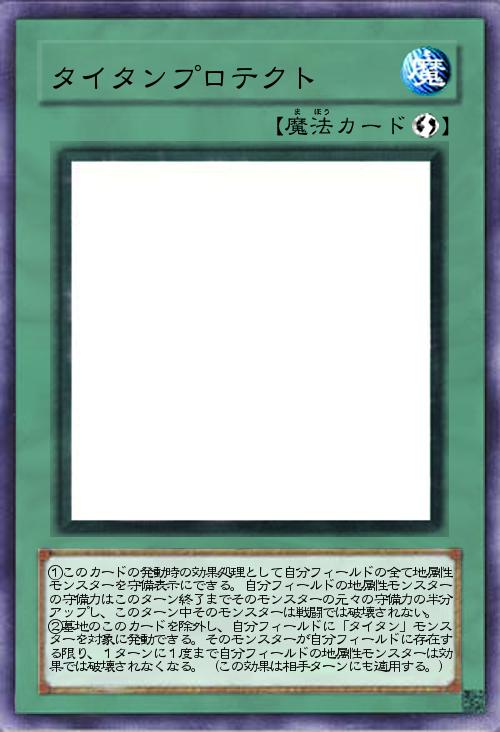 | ①このカードの発動時の効果処理として自分フィールドの全て地属性モンスターを守備表示にできる。自分フィールドの地属性モンスターの守備力はこのターン終了までそのモンスターの元々の守備力の半分アップし、このターン中そのモンスターは戦闘では破壊されない。 ②墓地のこのカードを除外し、自分フィールドに「タイタン」モンスターを対象に発動できる。そのモンスターが自分フィールドに存在する限り、1ターンに1度まで自分フィールドの地属性モンスターは効果では破壊されなくなる。(この効果は相手ターンにも適用する。) | |||