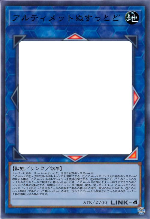 | トークン以外の「スーパーぬすっとど」を含む獣族モンスター4体 このカードの②・③の効果は相手ターンにも使用できる。①このカードのリンク先に相手モンスターが存在する場合、このカードは相手プレイヤーを直接攻撃できる。②相手の効果によってこのカードのリンク先の自分のカードが破壊され墓地へ送られた時、このカードの攻撃力をターン終了まで300ポイントさげる事で発動できる。破壊されたカードと同じ種類(魔法・罠・モンスター)のカードをこのカードのリンク先にあった自分のカードの枚数まで相手の墓地から選び、自分の手札に加える。③このカードが戦闘・効果によって墓地へ送られる場合、代わりにゲームから除外されている自分のチューナー1体を墓地へ送る事かできる。 | |||