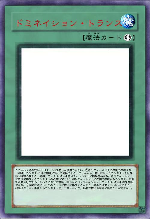 | このカード名の効果は、1ターンに1度しか使用できない。①自分フィールド上に表側で存在する「相縛」モンスター1体を墓地に送って発動できる。デッキから、墓地に送ったモンスターとは属性・種族の異なる「相縛」モンスター1体を自分フィールド上に特殊召喚する。自分フィールド上に表側で存在するモンスターの最高攻撃力が、相手フィールド上に表側で存在するモンスターの最低攻撃力以下なら、かわりに自分の墓地・除外から「ドミネイション」モンスター1体を特殊召喚できる。②発動に成功したこのカードが墓地に存在するかぎり、相手の通常ドローは2枚になり、相手はデッキ・手札からモンスターを、コストおよび、効果で墓地や除外に送ることができない。 | |||