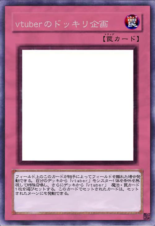 | フィールド上のこのカードが相手によってフィールドを離れた場合発動できる。自分のデッキから「vtuber」モンスター1体を条件を無視して特殊召喚し、さらにデッキから「vtuber」 魔法・罠カード1枚を選びセットする。このカードでセットされたカードは、セットされたターンにも発動できる。 | |||