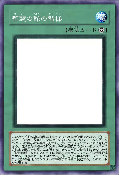 | このカード名の②の効果は1ターンに1度しか使用できない。①:このカードが魔法&罠ゾーンに存在する限り、自分のフィールドゾーンのカードは相手の効果を受けない。②:自分メインフェイズに発動できる。自分または相手のEXデッキの裏側表示のカードをランダムに3枚まで選んでお互いに確認する。そのカードの持ち主はその中から「智慧の館」Xモンスター1体を選んで自身のフィールドに特殊召喚できる。残りのカードは除外する。③:自分・相手のエンドフェイズに、自分の墓地にモンスターが存在する場合に発動する。このカードを破壊する。 | |||