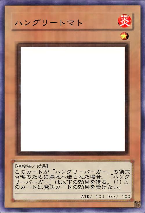| このカードが「ハングリーバーガー」の儀式召喚のために墓地へ送られた場合、「ハングリーバーガー」は以下の効果を得る。(1)このカードは魔法カードの効果を受けない。 | |||