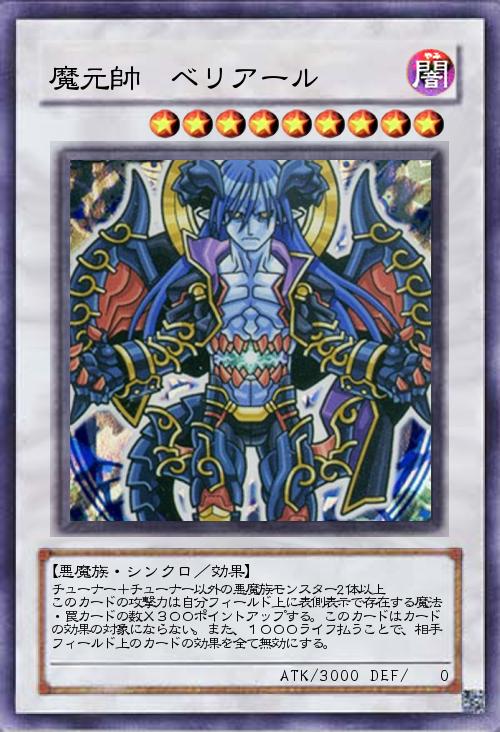 チューナー+チューナー以外の悪魔族モンスター2体以上 このカードの攻撃力は自分フィールド上に表側表示で存在する魔法・罠カードの数X300ポイントアップする。このカードはカードの効果の対象にならない。また、1000ライフ払うことで、相手フィールド上のカードの効果を全て無効にする。 |