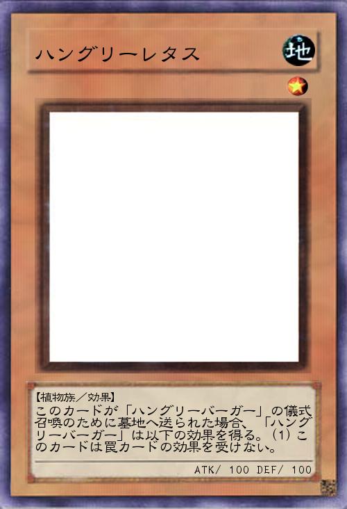 | このカードが「ハングリーバーガー」の儀式召喚のために墓地へ送られた場合、「ハングリーバーガー」は以下の効果を得る。(1)このカードは罠カードの効果を受けない。 | |||