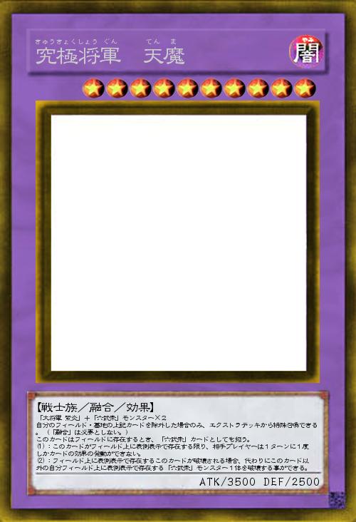 | 「大将軍 紫炎」+「六武衆」モンスター×2 自分のフィールド・墓地の上記カードを除外した場合のみ、エクストラデッキから特殊召喚できる。(「融合」は必要としない。) このカードはフィールドに存在するとき、「六武衆」カードとしても扱う。 (1):このカードがフィールド上に表側表示で存在する限り、相手プレイヤーは1ターンに1度しかカードの効果の発動ができない。 (2):フィールド上に表側表示で存在するこのカードが破壊される場合、代わりにこのカード以外の自分フィールド上に表側表示で存在する「六武衆」モンスター1体を破壊する事ができる。 | |||
