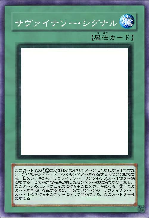| このカード名の①②の効果はそれぞれ1ターンに1度しか使用できない。①:相手フィールドにのみモンスターが存在する場合に発動できる。EXデッキから「サヴァイナソー」リンクモンスター1体を特殊召喚する。この効果で特殊召喚したモンスターは攻撃力が0になり、このターンのエンドフェイズに持ち主のEXデッキに戻る。②:このカードが墓地に存在する場合、自分のPゾーンの「サヴァイナソー」カード1枚を持ち主のデッキに戻して発動できる。このカードを手札に加える。 | |||