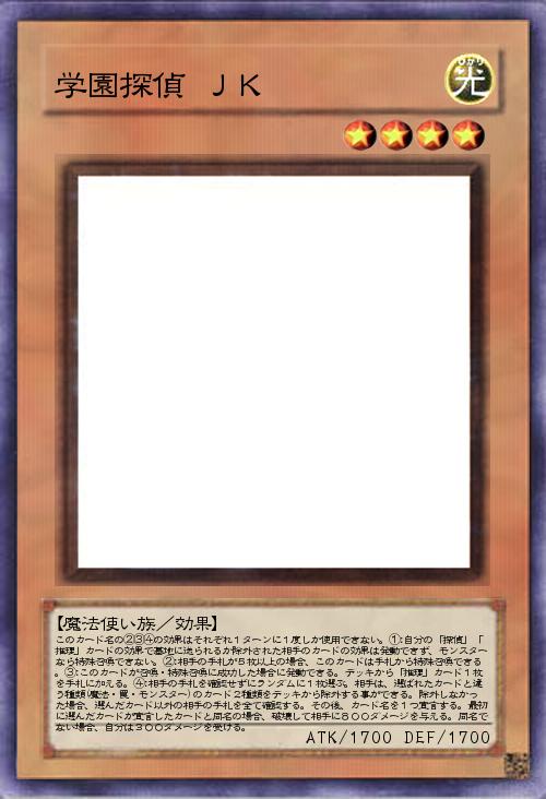 | このカード名の②③④の効果はそれぞれ1ターンに1度しか使用できない。①:自分の「探偵」「推理」カードの効果で墓地に送られるか除外された相手のカードの効果は発動できず、モンスターなら特殊召喚できない。②:相手の手札が5枚以上の場合、このカードは手札から特殊召喚できる。③:このカードが召喚・特殊召喚に成功した場合に発動できる。デッキから「推理」カード1枚を手札に加える。④:相手の手札を確認せずにランダムに1枚選ぶ。相手は、選ばれたカードと違う種類(魔法・罠・モンスター)のカード2種類をデッキから除外する事ができる。除外しなかった場合、選んだカード以外の相手の手札を全て確認する。その後、カード名を1つ宣言する。最初に選んだカードが宣言したカードと同名の場合、破壊して相手に800ダメージを与える。同名でない場合、自分は300ダメージを受ける。 | |||
