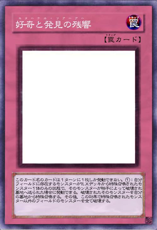 「久々にコンテストに参加してみます。元ネタは星のカービィディスカバリーの楽曲「時ドキ残響エターナルツアーアー」より。「エターナル」と含まれているので、ルビじゃない方のカード名はお隣のカードゲームにおける「エターナル呪文」っぽくしてみました。