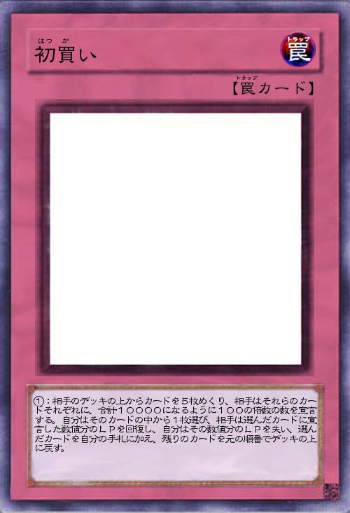 | ①:相手のデッキの上からカードを5枚めくり、相手はそれらのカードそれぞれに、合計10000になるように100の倍数の数を宣言する。自分はそのカードの中から1枚選び、相手は選んだカードに宣言した数値分のLPを回復し、自分はその数値分のLPを失い、選んだカードを自分の手札に加え、残りのカードを元の順番でデッキの上に戻す。 | |||