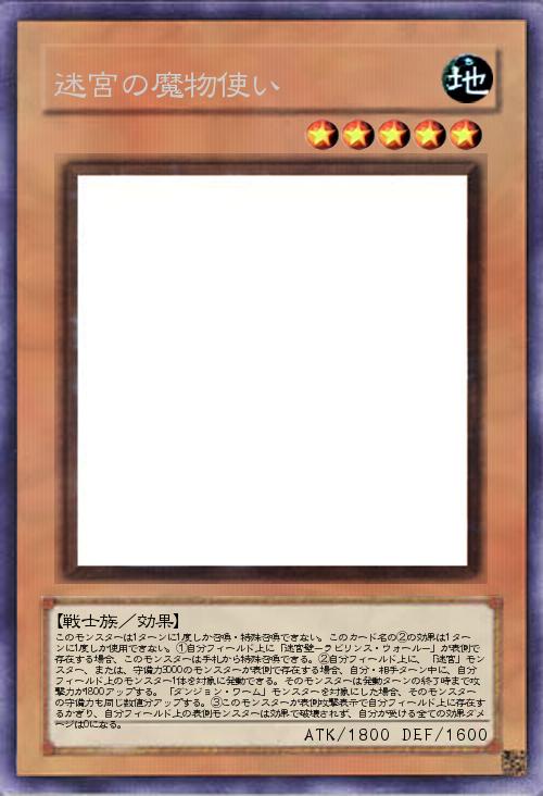 | このモンスターは1ターンに1度しか召喚・特殊召喚できない。このカード名の②の効果は1ターンに1度しか使用できない。①自分フィールド上に「迷宮壁-ラビリンス・ウォール-」が表側で存在する場合、このモンスターは手札から特殊召喚できる。②自分フィールド上に、「迷宮」モンスター、または、守備力3000のモンスターが表側で存在する場合、自分・相手ターン中に、自分フィールド上のモンスター1体を対象に発動できる。そのモンスターは発動ターンの終了時まで攻撃力が1800アップする。「ダンジョン・ワーム」モンスターを対象にした場合、そのモンスターの守備力も同じ数値分アップする。③このモンスターが表側攻撃表示で自分フィールド上に存在するかぎり、自分フィールド上の表側モンスターは効果で破壊されず、自分が受ける全ての効果ダメージは0になる。 | |||