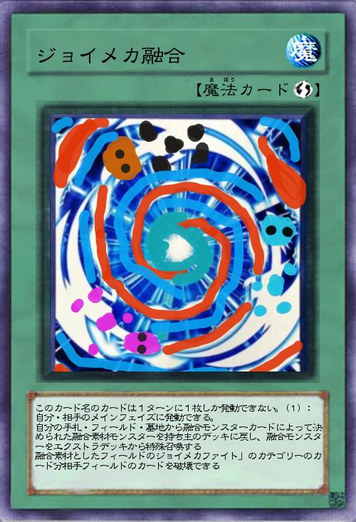 | このカード名のカードは1ターンに1枚しか発動できない。(1):自分・相手のメインフェイズに発動できる。 自分の手札・フィールド・墓地から融合モンスターカードによって決められた融合素材モンスターを持ち主のデッキに戻し、融合モンスターをエクストラデッキから特殊召喚する 融合素材としたフィールドのジョイメカファイト」のカテゴリーのカード分相手フィールドのカードを破壊できる | |||