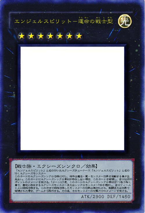 「エンジェルスピリット」と名の付いたエクシーズチューナー×「エンジェルスピリット」と名の付くエクシーズモンスター このカードのエクシーズシンクロ召喚に対し、相手は魔法・罠・モンスター効果を発動する事が出来ない。このカードにエクシーズシンクロ素材が存在しない場合、このカードを破壊し、自分は2800ポイントのダメージを受ける。1ターンに1度、このカードのエクシーズシンクロ素材を1つ取り除く事で、墓地に存在するエクシーズモンスターまたはシンクロモンスター1体を選択し、自分フィールド上に特殊召喚する。この方法で特殊召喚したモンスターの効果は無効化され、戦闘または効果で破壊された場合、ゲームから除外する。その後、そのモンスターの攻撃力分のダメージを受ける。 |
