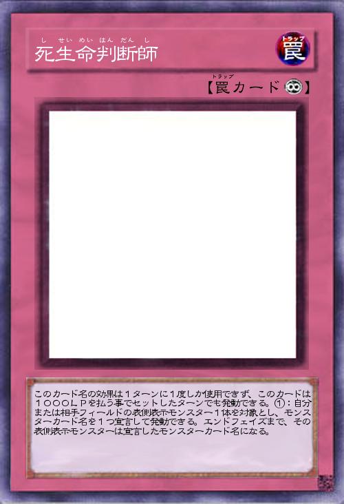 生命判断師の頭に死を付けて、死んでても生きてる命があるゾンビのようなイメージも含めた名前にすることで、墓地から場に出てるモンスターにも効果を対応できるようにしました。