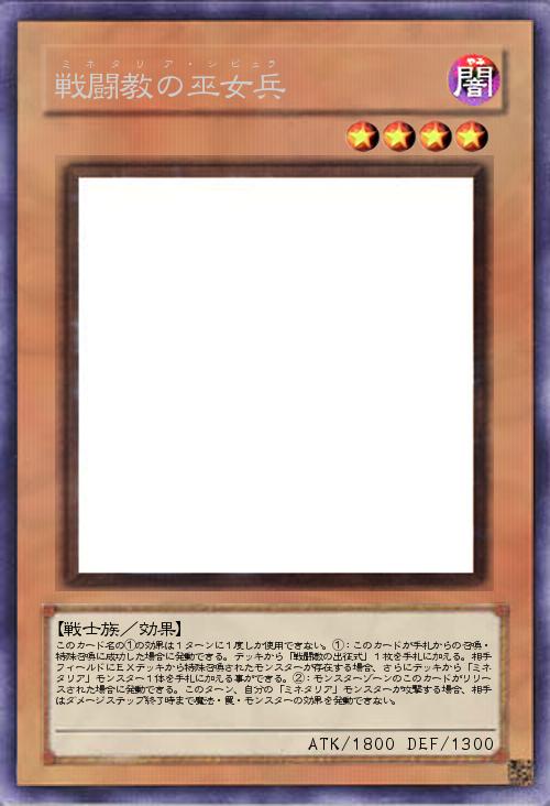 | このカード名の①の効果は1ターンに1度しか使用できない。①:このカードが手札からの召喚・特殊召喚に成功した場合に発動できる。デッキから「戦闘教の出征式」1枚を手札に加える。相手フィールドにEXデッキから特殊召喚されたモンスターが存在する場合、さらにデッキから「ミネタリア」モンスター1体を手札に加える事ができる。②:モンスターゾーンのこのカードがリリースされた場合に発動できる。このターン、自分の「ミネタリア」モンスターが攻撃する場合、相手はダメージステップ終了時まで魔法・罠・モンスターの効果を発動できない。 | |||