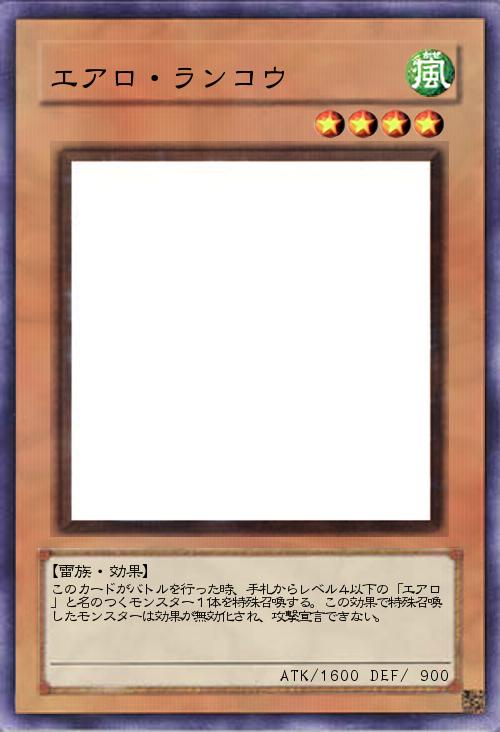 | このカードがバトルを行った時、手札からレベル4以下の「エアロ」と名のつくモンスター1体を特殊召喚する。この効果で特殊召喚したモンスターは効果が無効化され、攻撃宣言できない。 | |||