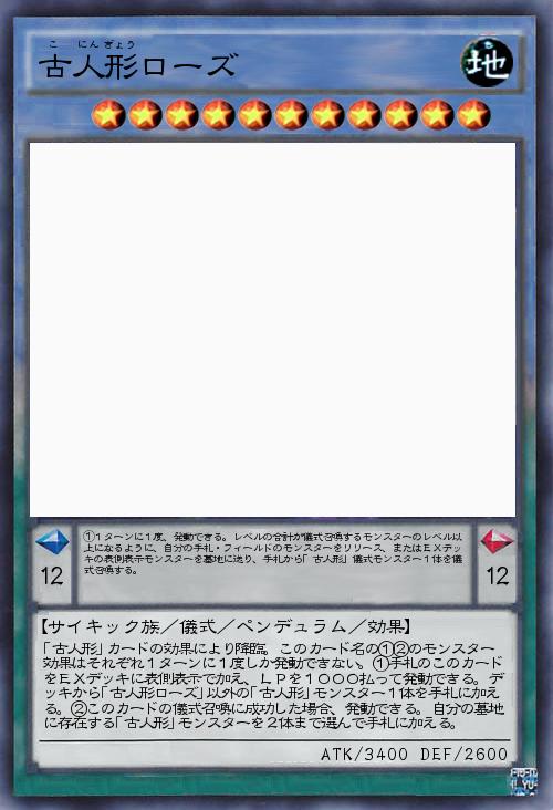 | 「古人形」カードの効果により降臨。このカード名の①②のモンスター効果はそれぞれ1ターンに1度しか発動できない。①手札のこのカードをEXデッキに表側表示で加え、LPを1000払って発動できる。デッキから「古人形ローズ」以外の「古人形」モンスター1体を手札に加える。②このカードの儀式召喚に成功した場合、発動できる。自分の墓地に存在する「古人形」モンスターを2体まで選んで手札に加える。 | |||