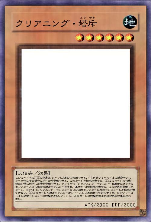 | このカード名の①②の効果は1ターンに1度のみ使用できる。①:自分フィールド上に通常モンスターが存在する場合に手札から発動できる。このカードを特殊召喚する。②:このカードの召喚、特殊召喚に成功した場合発動できる。デッキから「クリアニング」モンスター1枚墓地に送りそのモンスターと同じ属性の通常モンスターを手札、墓地から1体特殊召喚する。この効果を発動したターン、自分は「クリアニング」モンスターおよび効果モンスター以外のモンスターしか特殊召喚できない。③:このカードと通常モンスターがフィールド上表側表示で新在する時、自分フィールド上の通常モンスターは攻撃力が500アップし、このカードは攻撃対象または効果の対象にされない。 | |||