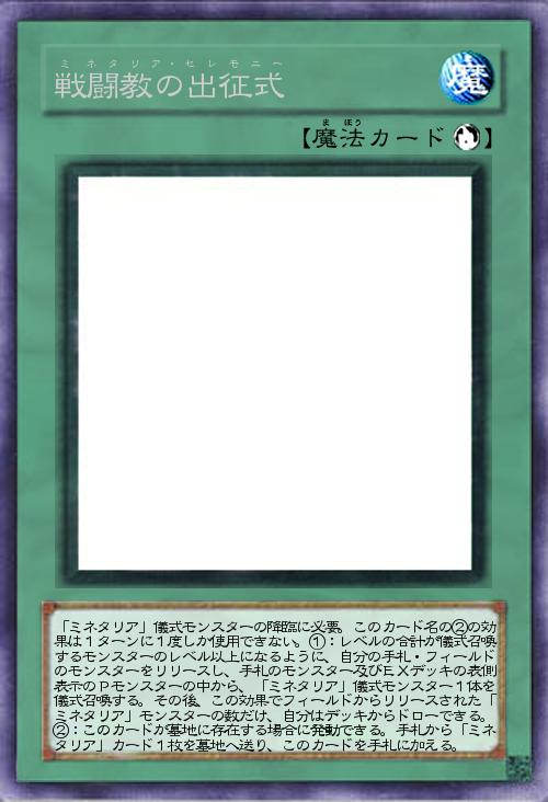 「オリジナルテーマ「ミネタリア」の魔法カードです。カード名のルビは「ミネタリア・セレモニー」です。」(2023-01-31 20:21)