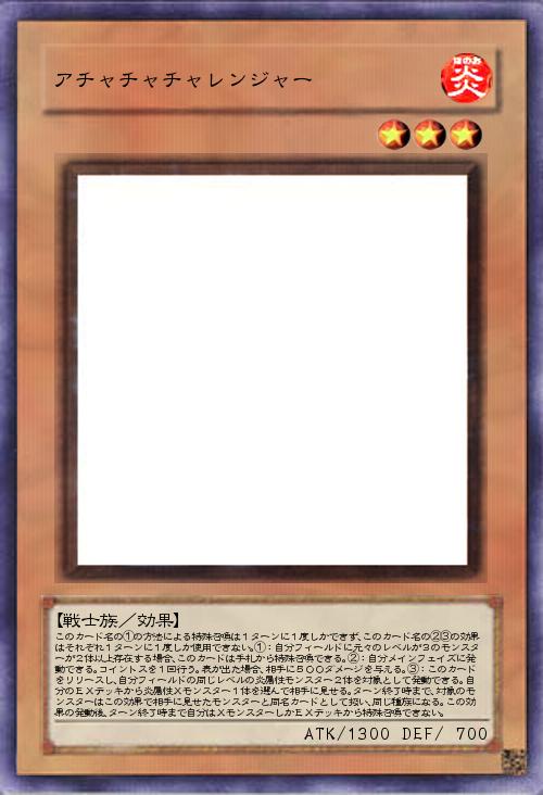 | このカード名の①の方法による特殊召喚は1ターンに1度しかできず、このカード名の②③の効果はそれぞれ1ターンに1度しか使用できない。①:自分フィールドに元々のレベルが3のモンスターが2体以上存在する場合、このカードは手札から特殊召喚できる。②:自分メインフェイズに発動できる。コイントスを1回行う。表が出た場合、相手に500ダメージを与える。③:このカードをリリースし、自分フィールドの同じレベルの炎属性モンスター2体を対象として発動できる。自分のEXデッキから炎属性Xモンスター1体を選んで相手に見せる。ターン終了時まで、対象のモンスターはこの効果で相手に見せたモンスターと同名カードとして扱い、同じ種族になる。この効果の発動後、ターン終了時まで自分はXモンスターしかEXデッキから特殊召喚できない。 | |||
