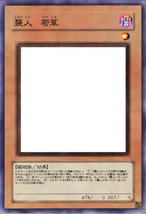 | このカード名の②の効果は1ターンに1度しか発動できない。 ①:「襲人」カードの効果を発動するために自分フィールドのX素材を取り除く場合、代わりに 手札のこのカードを墓地へ送る事ができる。 ②:自分フィールドのX素材を1つ取り除き発動できる。デッキから「襲人」モンスター1体を手札に加える。 ③:このカードをX素材として持っている、「襲人」Xモンスターはこのカードの②の効果を得る。 | |||