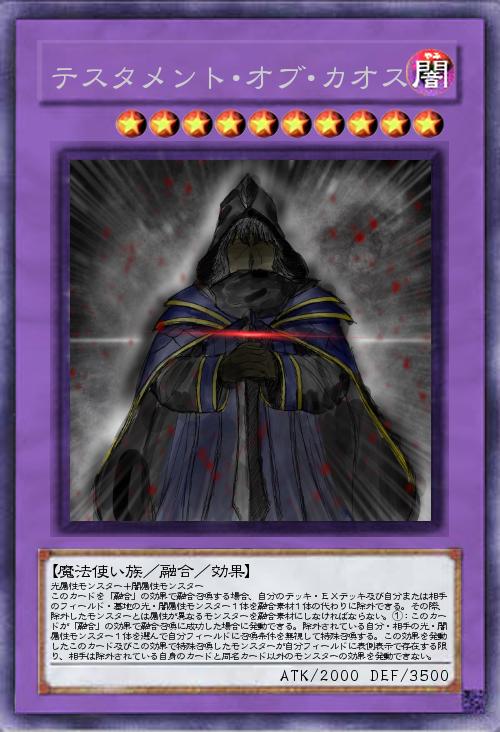 最初はガーディアンキマイラみたいな墓地からカード除外した融合召喚じゃなきゃ出せないっていうデザインで考えてたんですが、少し路線を変えて正規の融合で出そうとすればゴーストフュージョンできるインチキ融合効果がウリのテキストにしてみました。