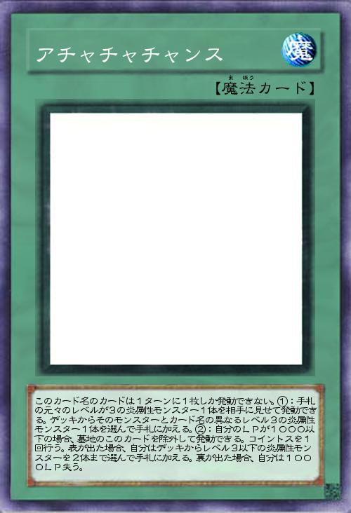 | このカード名のカードは1ターンに1枚しか発動できない。①:手札の元々のレベルが3の炎属性モンスター1体を相手に見せて発動できる。デッキからそのモンスターとカード名の異なるレベル3の炎属性モンスター1体を選んで手札に加える。②:自分のLPが1000以下の場合、墓地のこのカードを除外して発動できる。コイントスを1回行う。表が出た場合、自分はデッキからレベル3以下の炎属性モンスターを2体まで選んで手札に加える。裏が出た場合、自分は1000LP失う。 | |||