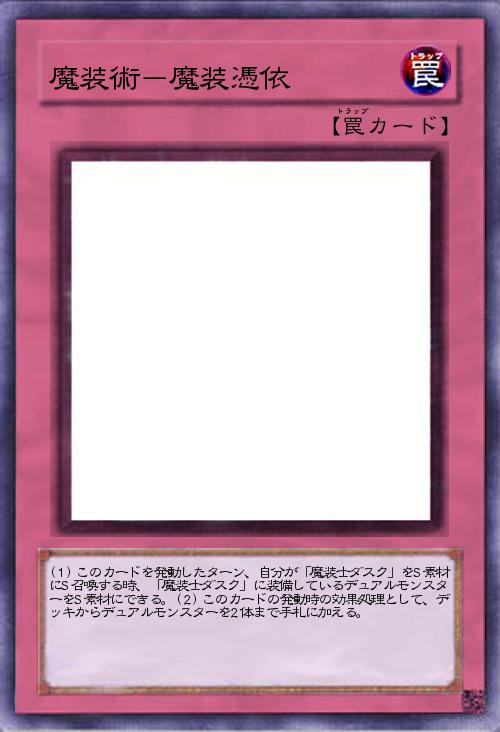 | (1)このカードを発動したターン、自分が「魔装士ダスク」をS素材にS召喚する時、「魔装士ダスク」に装備しているデュアルモンスターをS素材にできる。(2)このカードの発動時の効果処理として、デッキからデュアルモンスターを2体まで手札に加える。 | |||