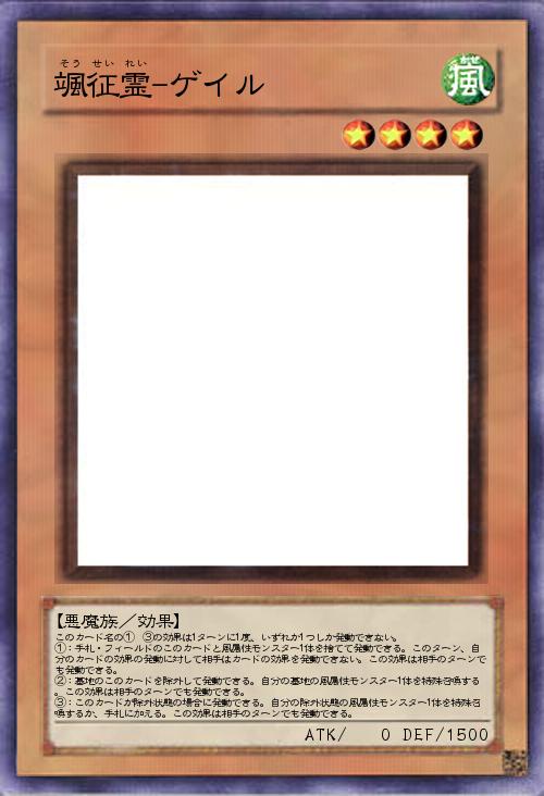 | このカード名の①〜③の効果は1ターンに1度、いずれか1つしか発動できない。 ①:手札・フィールドのこのカードと風属性モンスター1体を捨てて発動できる。このターン、自分のカードの効果の発動に対して相手はカードの効果を発動できない。この効果は相手のターンでも発動できる。 ②:墓地のこのカードを除外して発動できる。自分の墓地の風属性モンスター1体を特殊召喚する。この効果は相手のターンでも発動できる。 ③:このカードが除外状態の場合に発動できる。自分の除外状態の風属性モンスター1体を特殊召喚するか、手札に加える。この効果は相手のターンでも発動できる。 | |||