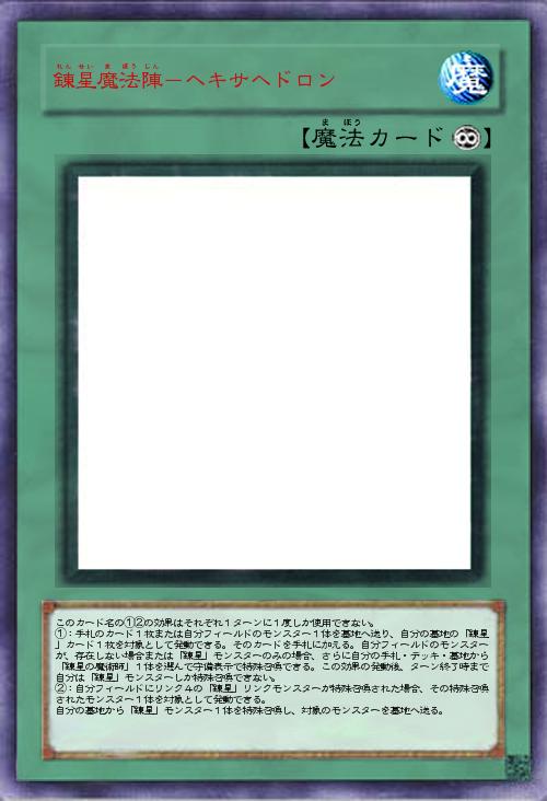 | このカード名の①②の効果はそれぞれ1ターンに1度しか使用できない。 ①:手札のカード1枚または自分フィールドのモンスター1体を墓地へ送り、自分の墓地の「錬星」カード1枚を対象として発動できる。そのカードを手札に加える。自分フィールドのモンスターが、存在しない場合または「錬星」モンスターのみの場合、さらに自分の手札・デッキ・墓地から「錬星の魔術師」1体を選んで守備表示で特殊召喚できる。この効果の発動後、ターン終了時まで自分は「錬星」モンスターしか特殊召喚できない。 ②:自分フィールドにリンク4の「錬星」リンクモンスターが特殊召喚された場合、その特殊召喚されたモンスター1体を対象として発動できる。 自分の墓地から「錬星」モンスター1体を特殊召喚し、対象のモンスターを墓地へ送る。 | |||