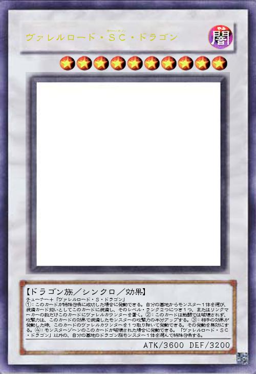 | チューナー+「ヴァレルロード・S・ドラゴン」 ①:このカードが特殊召喚に成功した場合に発動できる。自分の墓地からモンスター1体を選び、装備カード扱いとしてこのカードに装備し、そのレベル・ランク2つにつき1つ、またはリンクマーカーの数だけこのカードにヴァレルカウンターを置く。②:このカードは戦闘では破壊されず、攻撃力は、このカードの効果で装備したモンスターの攻撃力の半分アップする。③:相手の効果が発動した時、このカードのヴァレルカウンターを1つ取り除いて発動できる。その発動を無効にする。④:モンスターゾーンのこのカードが破壊された場合に発動できる。「ヴァレルロード・SC・ドラゴン」以外の、自分の墓地のドラゴン族モンスター1体を選んで特殊召喚する。 | |||