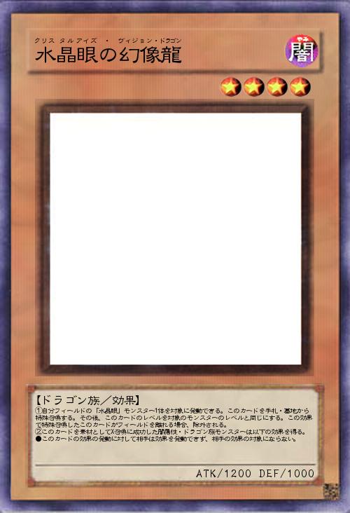 | ①自分フィールドの「水晶眼」モンスター1体を対象に発動できる。このカードを手札・墓地から特殊召喚する。その後、このカードのレベルを対象のモンスターのレベルと同じにする。この効果で特殊召喚したこのカードがフィールドを離れる場合、除外される。 ②このカードを素材としてX召喚に成功した闇属性・ドラゴン族モンスターは以下の効果を得る。 ●このカードの効果の発動に対して相手は効果を発動できず、相手の効果の対象にならない。 | |||