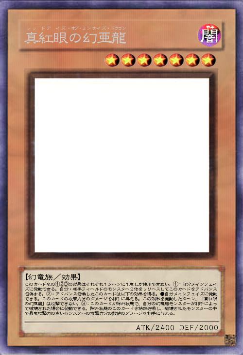| このカード名の①②③の効果はそれぞれ1ターンに1度しか使用できない。①:自分メインフェイズに発動できる。自分・相手フィールドのモンスター2体をリリースしてこのカードをアドバンス召喚する。②:アドバンス召喚したこのカードは以下の効果を得る。●自分メインフェイズに発動できる。このカードの攻撃力分のダメージを相手に与える。この効果を発動したターン、「真紅眼の幻亜龍」は攻撃できない。③:このカードが除外状態で、自分の幻竜族モンスターが相手によって破壊された場合に発動できる。除外状態のこのカードを特殊召喚し、破壊されたモンスターの中で最も攻撃力の高いモンスターの攻撃力分の数値のダメージを相手に与える。 | |||
