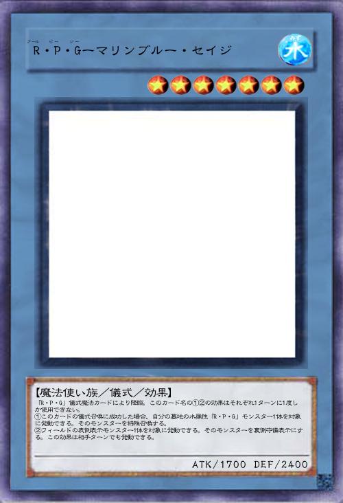 | 「R・P・G」儀式魔法カードにより降臨。このカード名の①②の効果はそれぞれ1ターンに1度しか使用できない。 ①このカードの儀式召喚に成功した場合、自分の墓地の水属性「R・P・G」モンスター1体を対象に発動できる。そのモンスターを特殊召喚する。 ②フィールドの表側表示モンスター1体を対象に発動できる。そのモンスターを裏側守備表示にする。この効果は相手ターンでも発動できる。 | |||