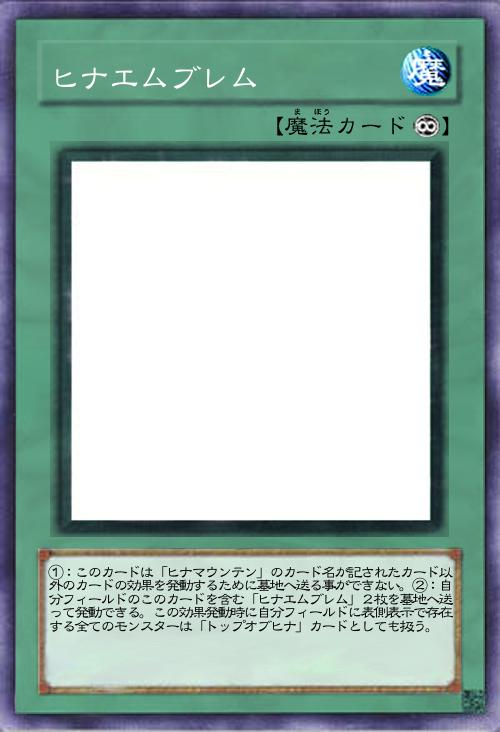 | ①:このカードは「ヒナマウンテン」のカード名が記されたカード以外のカードの効果を発動するために墓地へ送る事ができない。②:自分フィールドのこのカードを含む「ヒナエムブレム」2枚を墓地へ送って発動できる。この効果発動時に自分フィールドに表側表示で存在する全てのモンスターは「トップオブヒナ」カードとしても扱う。 | |||