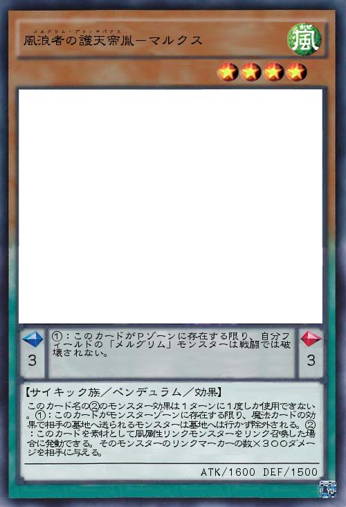 「オリジナルテーマ「メルグリム」「プリンキパクス」のペンデュラムモンスターです。カード名の「風浪者の護天帝胤」のルビは「メルグリム・プリンキパクス」です。」(2023-03-04 11:00)