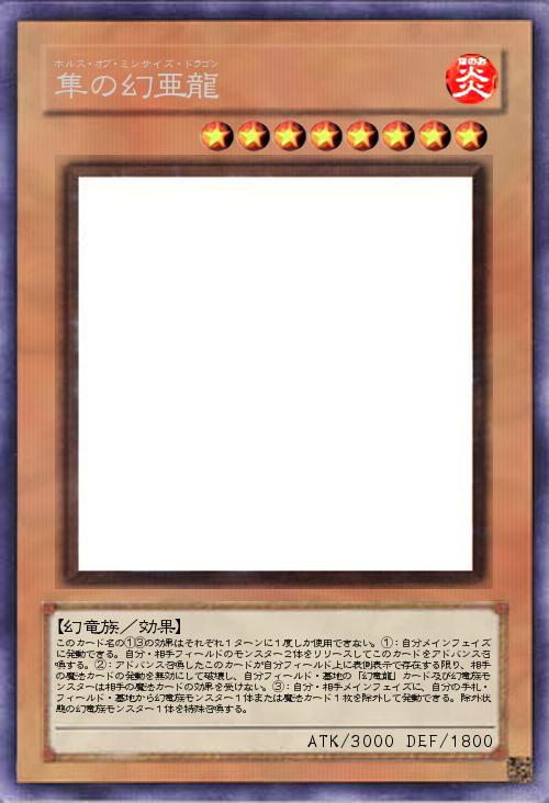 | このカード名の①③の効果はそれぞれ1ターンに1度しか使用できない。①:自分メインフェイズに発動できる。自分・相手フィールドのモンスター2体をリリースしてこのカードをアドバンス召喚する。②:アドバンス召喚したこのカードが自分フィールド上に表側表示で存在する限り、相手の魔法カードの発動を無効にして破壊し、自分フィールド・墓地の「幻竜龍」カード及び幻竜族モンスターは相手の魔法カードの効果を受けない。③:自分・相手メインフェイズに、自分の手札・フィールド・墓地から幻竜族モンスター1体または魔法カード1枚を除外して発動できる。除外状態の幻竜族モンスター1体を特殊召喚する。 | |||