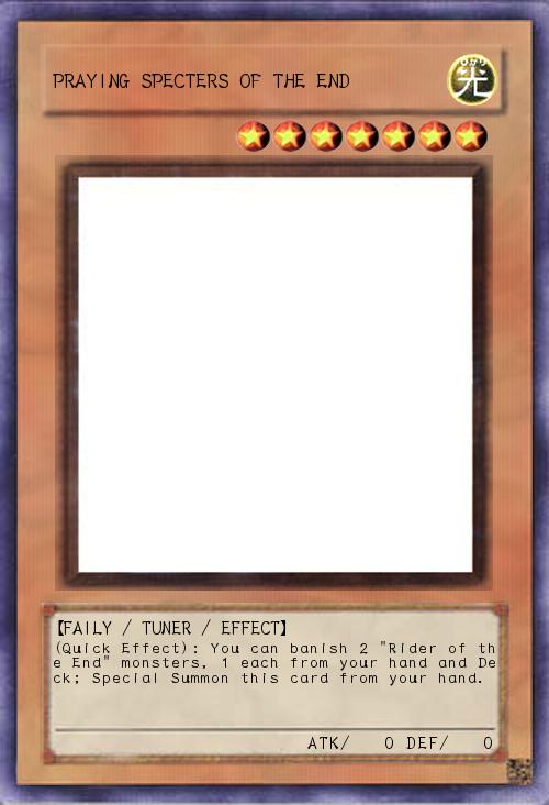 | (Quick Effect): You can banish 2 "Rider of the End" monsters, 1 each from your hand and Deck; Special Summon this card from your hand. | |||